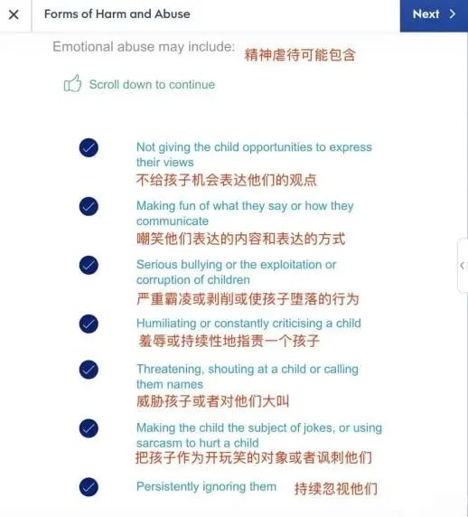 在小姚所在的这个学校,有两个老师专门负责safeguarding工作,他们没有教学任务,而其中一个老师有过多年的社会工作背景,十分擅长处理学生的问题,一般情况下,当他们发现学生出现了任何问题,比如可能遇到了什么样的虐待,就会看情况联系有关部门,比如社区、医院、警察局等。