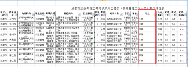下面,参考成都招录职位情况: