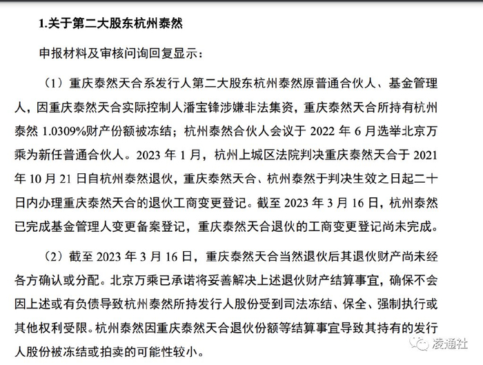 第二,从上市委关注的第二大股东杭州泰然的问题看,其基金管理控制人潘宝锋已经因犯集资诈骗罪被杭州法院判处无期徒刑,也就是说,其实诺康达的A轮投资者的钱可能是非法P2P资金,虽然目前其股权并未被冻结,但理论上讲,只要这部分资产有了套现的价值,是一定会被追讨人冻结的。虽然IPO问询反复强调已经选了新的合伙人并经过法院判决退伙,但对方拒绝合作的现实现实,不可能在短期内解决这个问题。如果IPO成功,这一带病的风险是一直存在的。