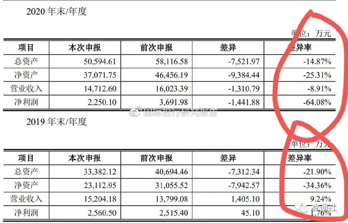 二次申报,财务数据相差很多 ,尤其是家里人的一项,差别竟然是64.08%。如果前次数据都是假的,证监会应该去抓人。