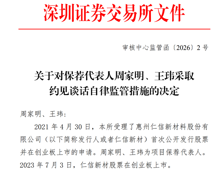 深交所 2026 首谈 : 万和证券保荐人周家明、王玮被深交所约谈!