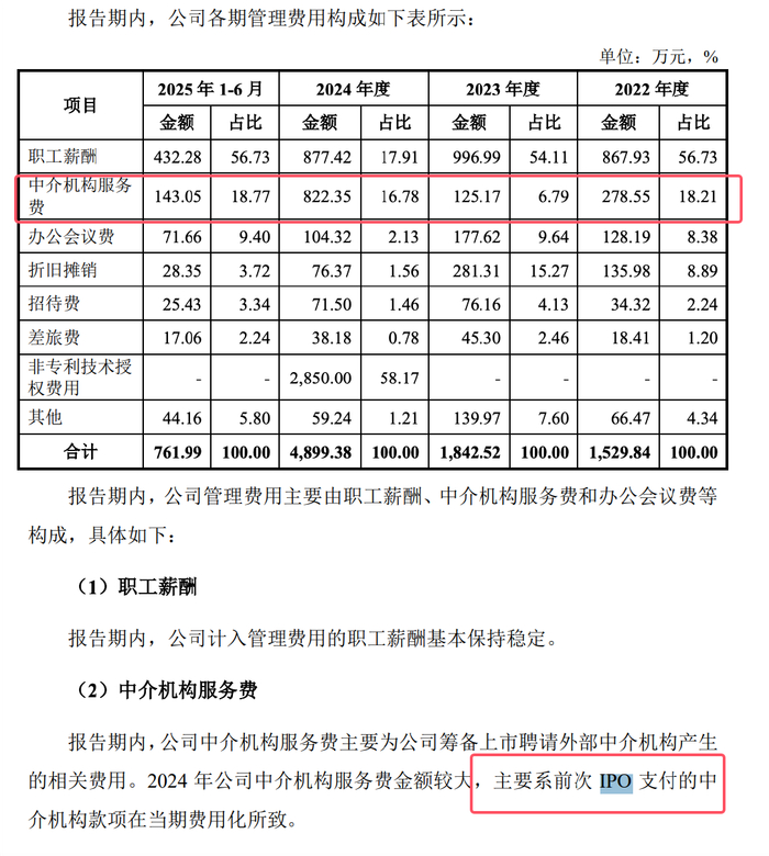 上次 IPO 花费 822.35 万