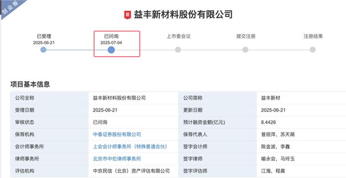 深交所发行审核网站显示,益丰新材IPO回复了深交所的第一轮问询函。