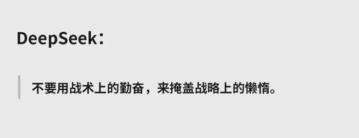DeepSeek也曾指出:不要用战术上的勤奋,来掩盖战略上的懒惰。