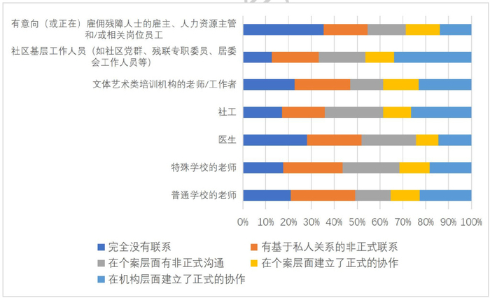 面对服务供给“多元化”,一些专门为心智障碍者提供服务的机构也开始尝试与跨专业的机构或从业者展开协作,但目前大多是非正式的联系。