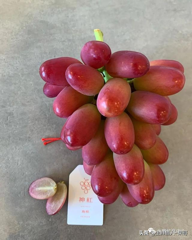 神红葡萄是岛根县2007年培育并在2018年发布的新品种。特色是:高糖度、颜色红色、连皮享用且无籽。