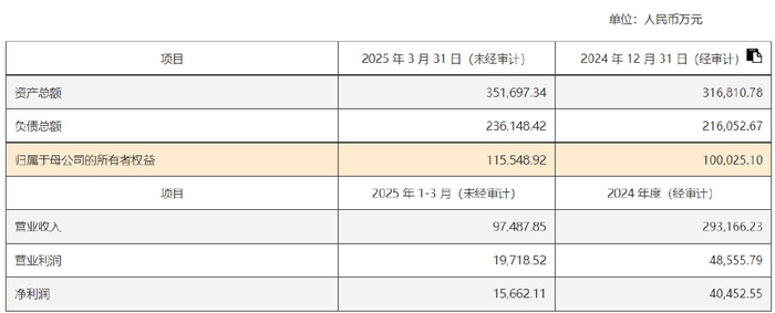 财务数据显示,截至2025年3月底,索尔思光电总资产35.17亿元,归属于母公司的所有者权益11.55亿元;2024年及2025年一季度,分别实现营业收入29.32亿元、9.75亿元,净利润4.05亿元、1.57亿元。
