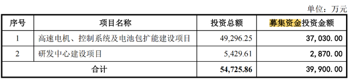 此次IPO,晨光电机计划募集资金3.99亿元,其中3.7亿元用于高速电机、控制系统及电池包扩能建设项目,0.29亿元用于研发中心建设项目。