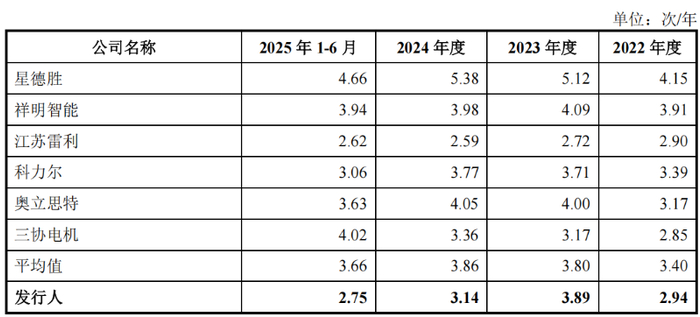 由此可见,报告期内,晨光电机的应收账款出现了大幅增加,截至2025年6月30日,该公司的应收账款余额几乎占到流动资产一半。而且,该公司的应收账款周转率大多情况下落后于同行可比公司均值。