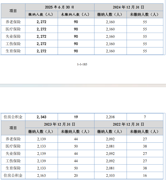 值得注意的是,报告期内,原力数字的社保未缴纳人数突然大幅增加。截至2025年6月30日,该公司的社保未缴纳人数为90人,较2024年12月31日的55人大幅增加了35人。而在2024年和2023年。这一数字变化并没有这么大,以养老保险为例,分别增加了11人和17人。那么,在2025年上半年,该公司的未缴纳社保人数为何大幅增加?对此,该公司并没有给出详细解释。