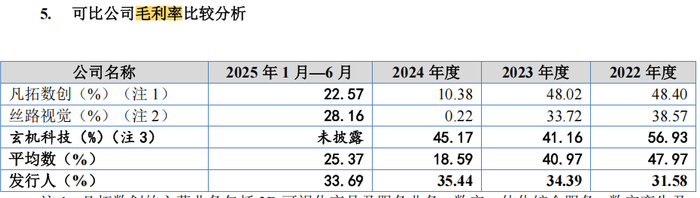 报告期内,原力数字的毛利率分别为31.58%、34.39%、35.44%和33.69%,同期可比公司的毛利率均值分别为47.97%、40.97%、18.59%和25.37%。