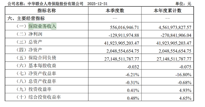 2025年,中华联合人寿保险股份有限公司(下称“中华联合人寿”)以2.71亿元净亏损的业绩,揭开了保险行业深度调整期的残酷一面。