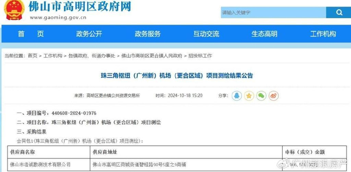 2024年,佛山高明招商引资推介大会透露,广州新机场的项目建议书已于近期获得立项批复同意。后续工程相关招标中,用到的也是名字也是珠三角枢纽(广州新)机场。