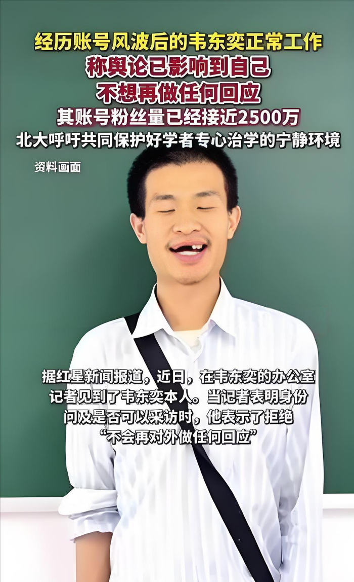 与之形成荒诞对比的是,社交平台上“韦东奕被北大开除”的谣言再度流传,校方不得不辟谣。