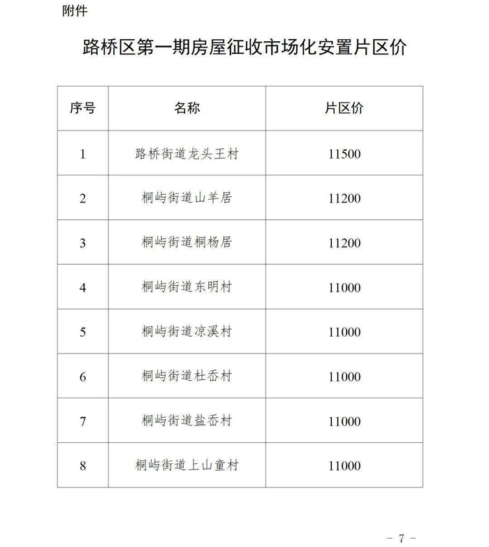 同时,《台州市路桥区住宅房屋征收市场化安置实施方案》(征求意见稿)文件、路桥区第一期房屋征收市场化安置片区价也一并公开,一起来了解下: