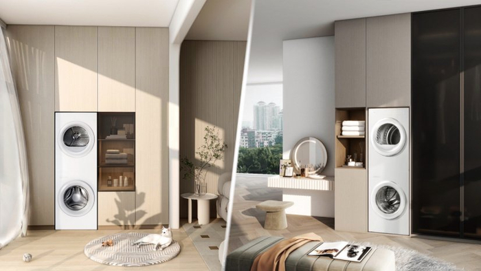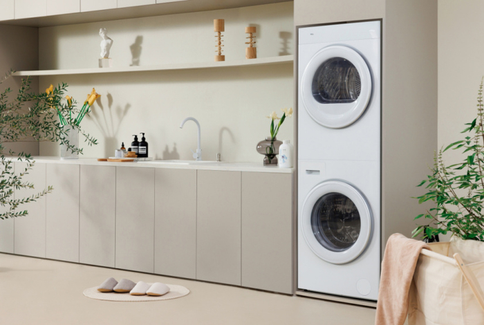 双子舱洗烘护集成机T10还采用集成式水电设计,无需额外设计线路和管道,能够实现单一进水、排水、接电,可以满足消费者不同户型对洗烘一体机的需求。