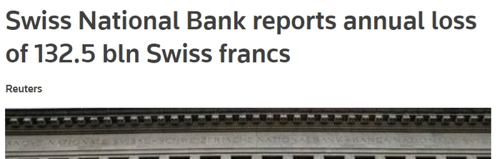 一份公告本应提醒监管机构和政府:瑞士国家银行(SNB)在2022年创纪录的亏损1325亿瑞士法郎,约合1330亿欧元,于2022年10月31日发布,并于3月6日得到确认。