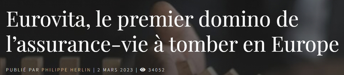 欧洲第一张倒下的人寿保险多米诺骨牌是Eurovita,它是意大利保险业的领导者之一,意大利人寿保险监管机构 IVASS于2月22日决定对其进行接管。英国投资基金Cinven的所有者确实拒绝了任何资本重组,他在最后一刻改变了主意,同意向公司注资1亿欧元。但这并没有改变什么,这笔资金是不够的,至少需要4倍才能解决问题。