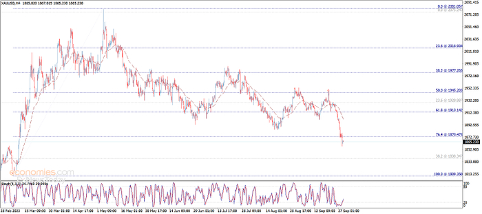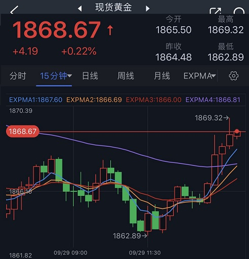 24K99讯 周五(9月29日)亚市尾盘,美元指数短线突然走低,目前跌至105.90附近;现货黄金短线快速上升,金价目前正逼近1870美元/盎司关口。知名财经资讯网站Economies.com周五最新撰文,对日内黄金技术前景进行分析。