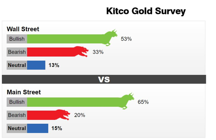 最新的 Kitco News 每周黄金调查显示,散户投资者对下周保持乐观前景,而略多市场分析师也看好黄金的近期前景。