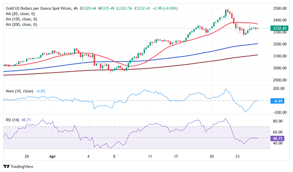 Bednarik补充道。4小时走势图显示,金价正在轻松盘整。金价继续交投在温和看跌的20周期SMA下方,该均线在3370美元/盎司附近提供动态阻力,不过较长期移动平均线在远低于当前金价的水平维持看涨斜率。最后,技术指标在负面水平内仍然没有方向。假如金价突破上述20周期SMA阻力(约3370美元/盎司),应该会为金价更可持续的反弹打开大门。