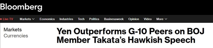 #日本市场#FX168财经报社(亚太)讯 周四(2月26日)亚市盘中,在日本央行理事会成员、被视为委员会中最鹰派声音的高田创(Hajime Takata)再次呼吁进一步加息后,日元领涨十国集团(G10)货币。