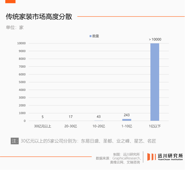 与之对应的背景,是家装行业的极度非标和分散。一方面,家装公司从设计到售后依赖定制和主观经验,工业化程度很低;另一方面,一方水土养一方业主,横躺北方的经验到了南方可能完全失效。这导致它们只能用不断扩大服务范围的增长,去对冲没有规模效应的劣势。