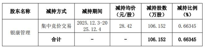 银康管理2025年合计减持套现金额为1.05亿元。