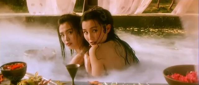 《青蛇》中,王祖贤饰演的白蛇和张曼玉饰演的青蛇,同样有贴身共浴的一幕。