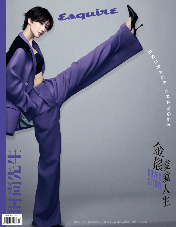金晨 x《时尚先生》11月刊封面,热血、随性和梦幻的金晨,短发超有元气。