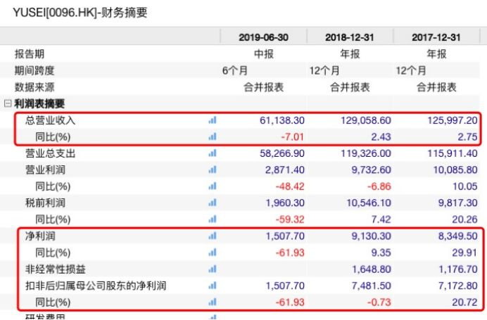 反观友成控股上市以来的财务报表,其在2017年及2018年净利润分别为8349.5万元、9130.3万元,而2019年上半年净利润为1507万元,同比下降62%;总营业收入为6.11亿元,同比下降7%。
