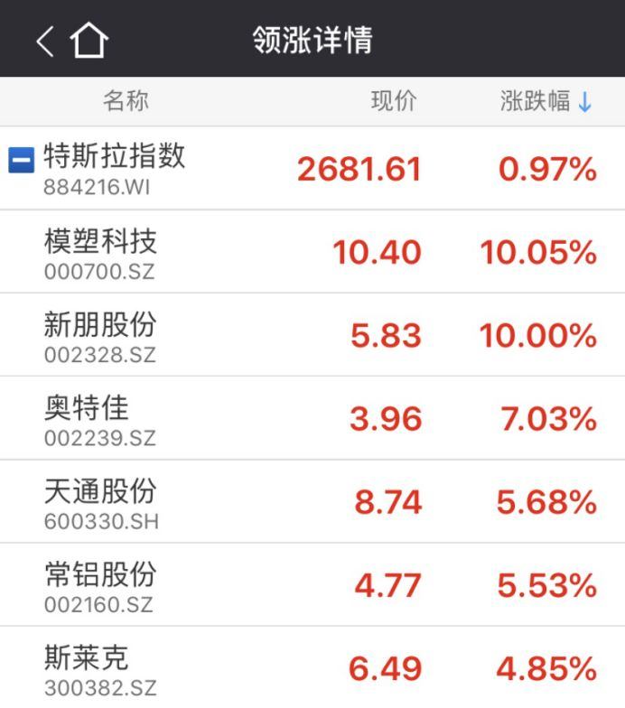 同时,港股特斯拉概念股小幅上扬,雅迪控股涨3.68%,赣锋锂业涨2.50%。