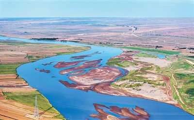 内蒙古巴彦淖尔市磴口县刘拐沙头,黄河两岸显出片片绿意。