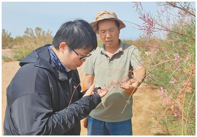 随着李凤岐等老一代林场人陆续退休,防沙治沙的担子落到了吕林泽等年轻职工肩上。早上8点,吕林泽开始一天的巡护。“叶片卷曲,颜色泛黄,应该是蚜虫。”走到一棵杨树旁,吕林泽一边端详,一边记录病虫害的情况。5公里外,林场场部的一间办公室内,大屏幕上清晰显示着林场的重点区域。人防技防相结合,为林场织就了一张坚实的防护网。截至目前,新华林场的林草覆盖率达到88%。