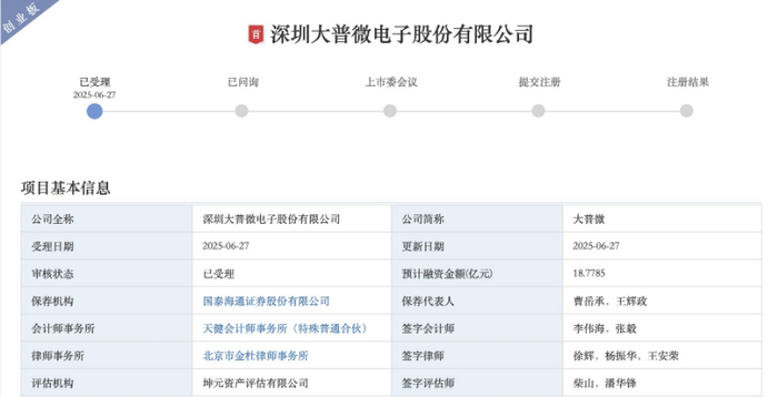 6月27日,深交所发行上市审核官网显示,创业板受理大普微IPO申请,这是创业板开板以来首单未盈利IPO项目。
