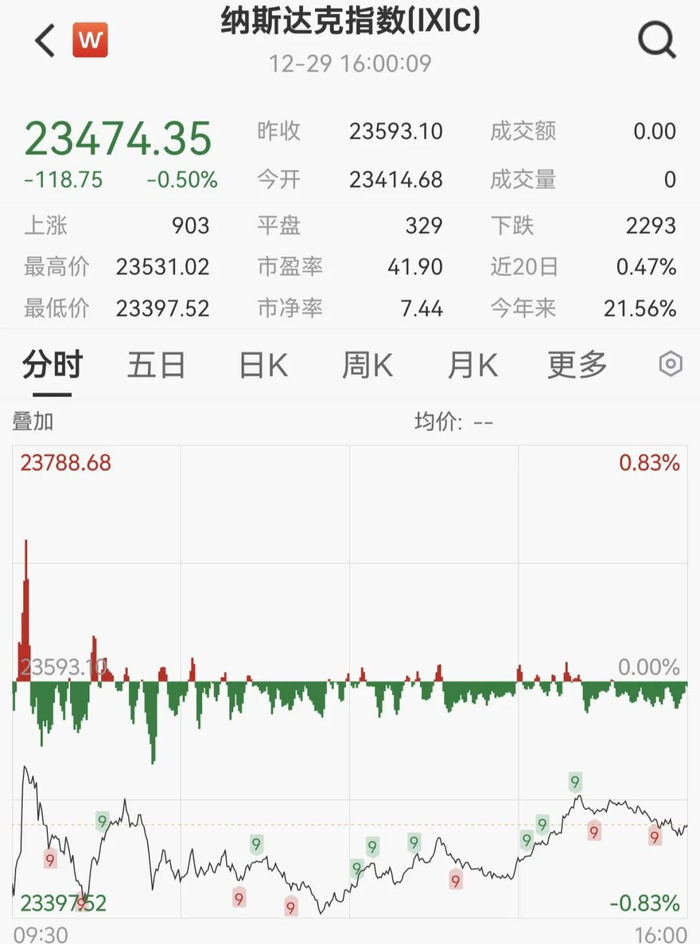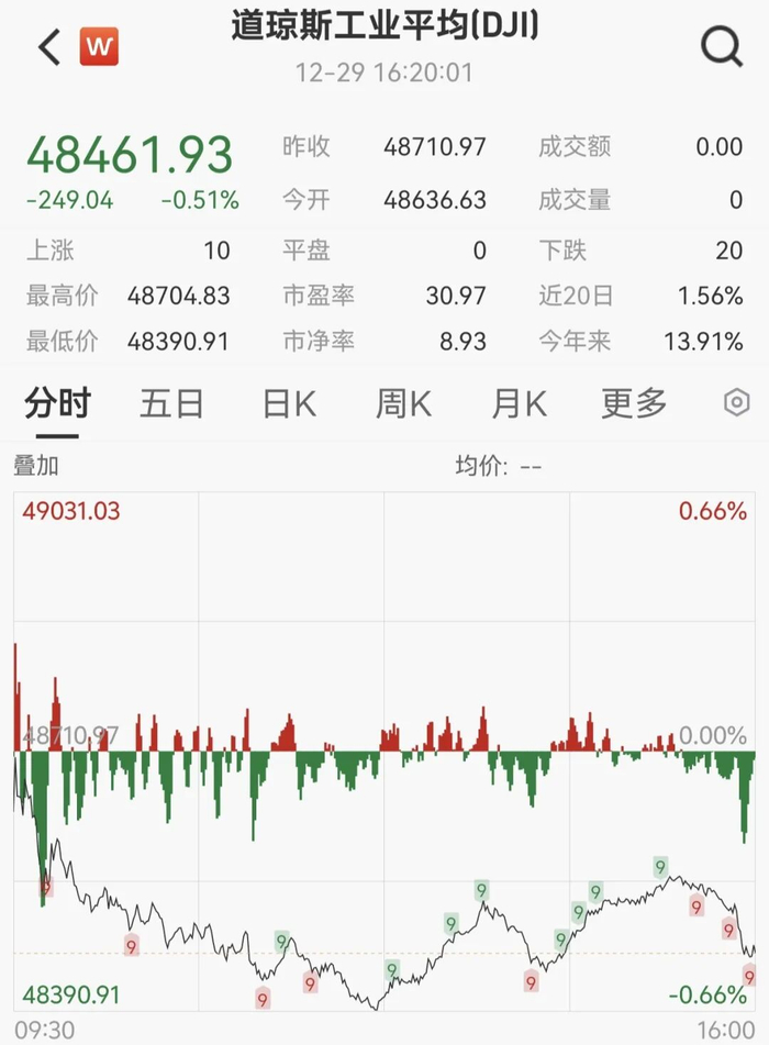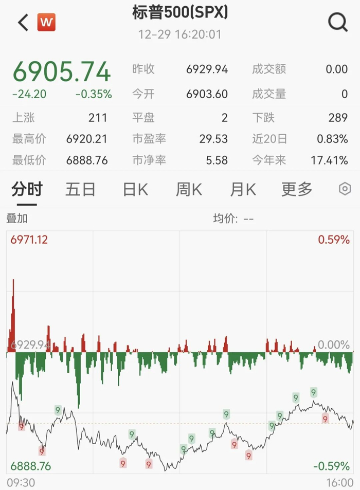 美国三大股指全线收跌:道指跌0.51%,报48461.93点;标普500指数跌0.35%,报6905.74点;纳指跌0.5%,报23474.35点。