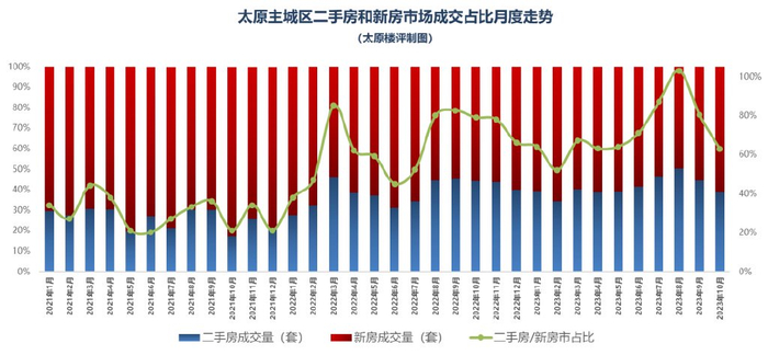 相对全国太原二手房表现偏差,成交量低于新房,价格因流通性差挤压明显!