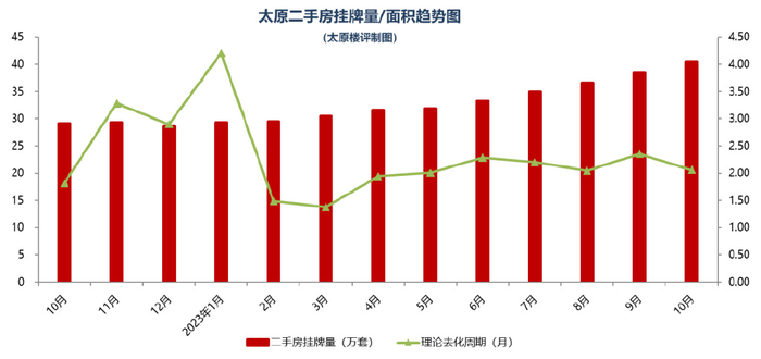本月二手房市场挂牌量4.0万套,挂牌面积约344万㎡,理论去化周期为20个月。