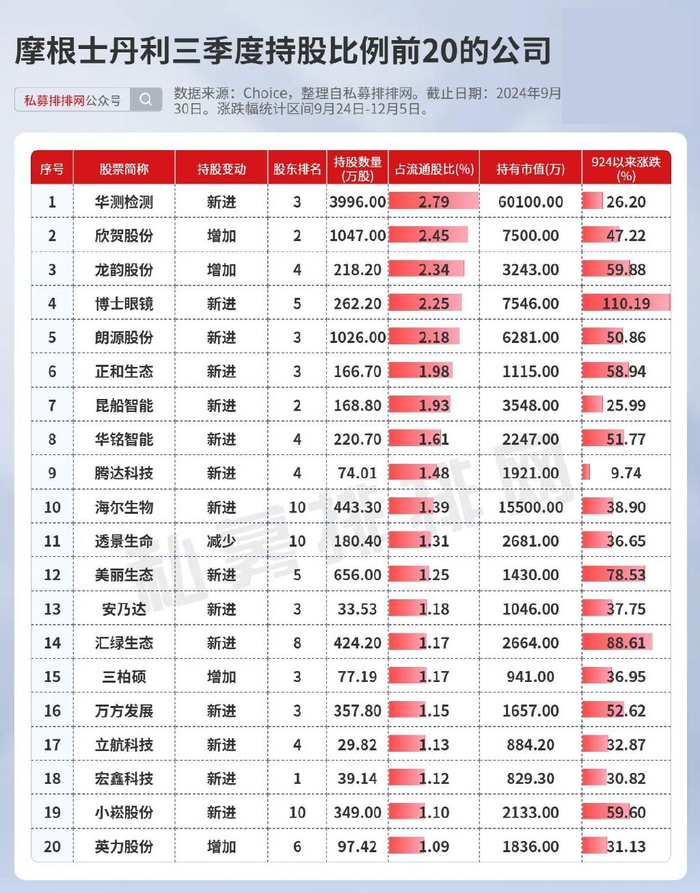 摩根士丹利:三季度重仓234只个股!翻倍股高达23只!