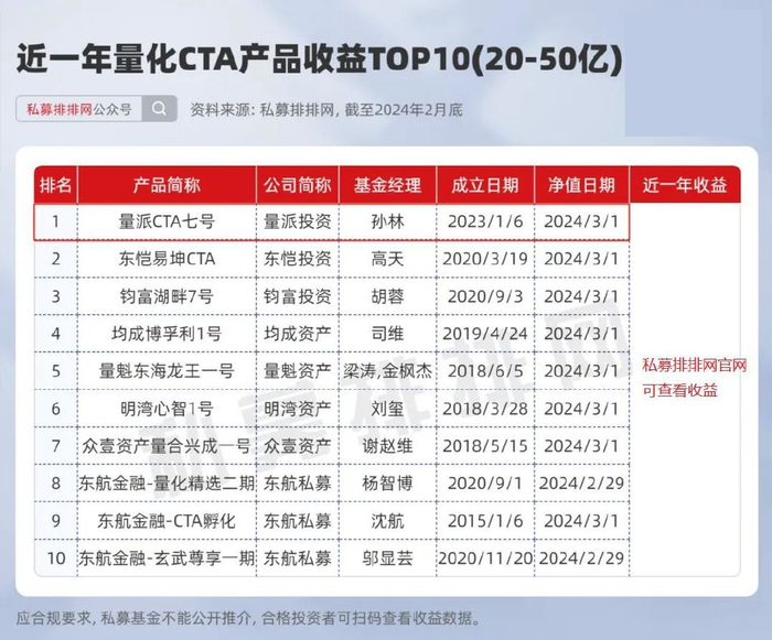 以2023年1月6日成立的CTA代表产品“量派CTA七号”为例,截至2024年2月底,该产品成立以来收益为***%,区间回撤为***%,今年以来收益为***%。而从近一年看,“量派CTA七号”收益为***%。