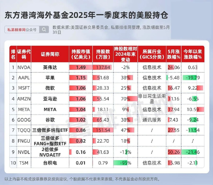 但斌掌管的海外基金Oriental Harbor Investment Fund一季度末持仓于5月全部出炉,持仓市值合计8.68亿美元(折合人民币超62亿元)。数据显示,有8只美股(或美股ETF)在5月均实现超10%以上的涨幅。
