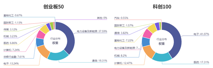 当我们把目光聚焦到适合科技投资的宽基指数时,创业板50和科创100宛如科技投资宇宙里的双子星。不同于泛科技主题基金的模糊定位,创业板50与科创100指数在成分股结构、产业侧重、风险特征上形成鲜明互补,堪称科技宽基的“黄金组合”。