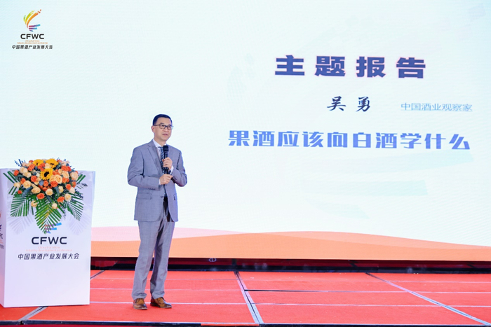 酒业公益品牌酉贤创始人、酒业观察家和培训专家吴勇应邀出席了大会并做了主题为《中国果酒产业战略升级路径——向白酒学习什么?》的专业报告,赢得与会众人的高度认同和赞许。