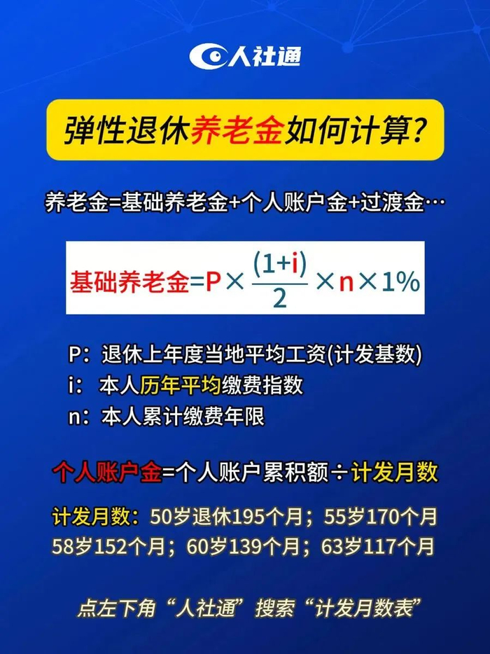 二、弹性退休年龄对照表、养老金计算公式