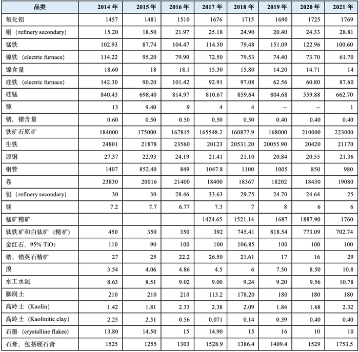 2 2014年至俄乌战争爆发前乌克兰主要矿产资源产量情况(单位:千公吨)