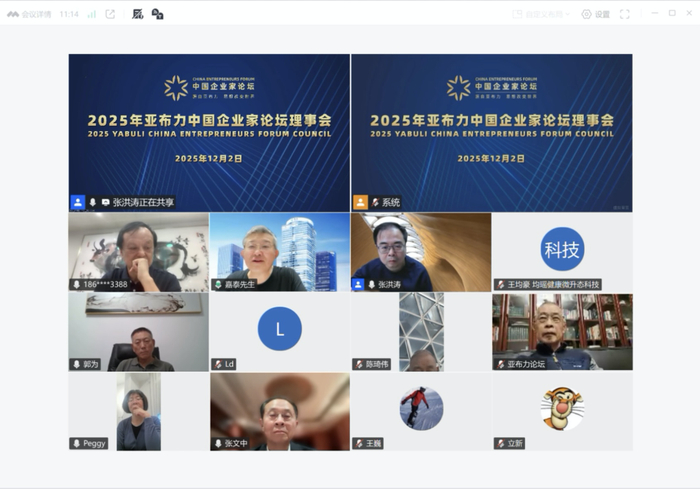 12月2日,亚布力中国企业家论坛2025年理事会在线上顺利召开,会议由亚布力论坛理事长、泰康保险集团股份有限公司创始人、董事长兼CEO陈东升主持。