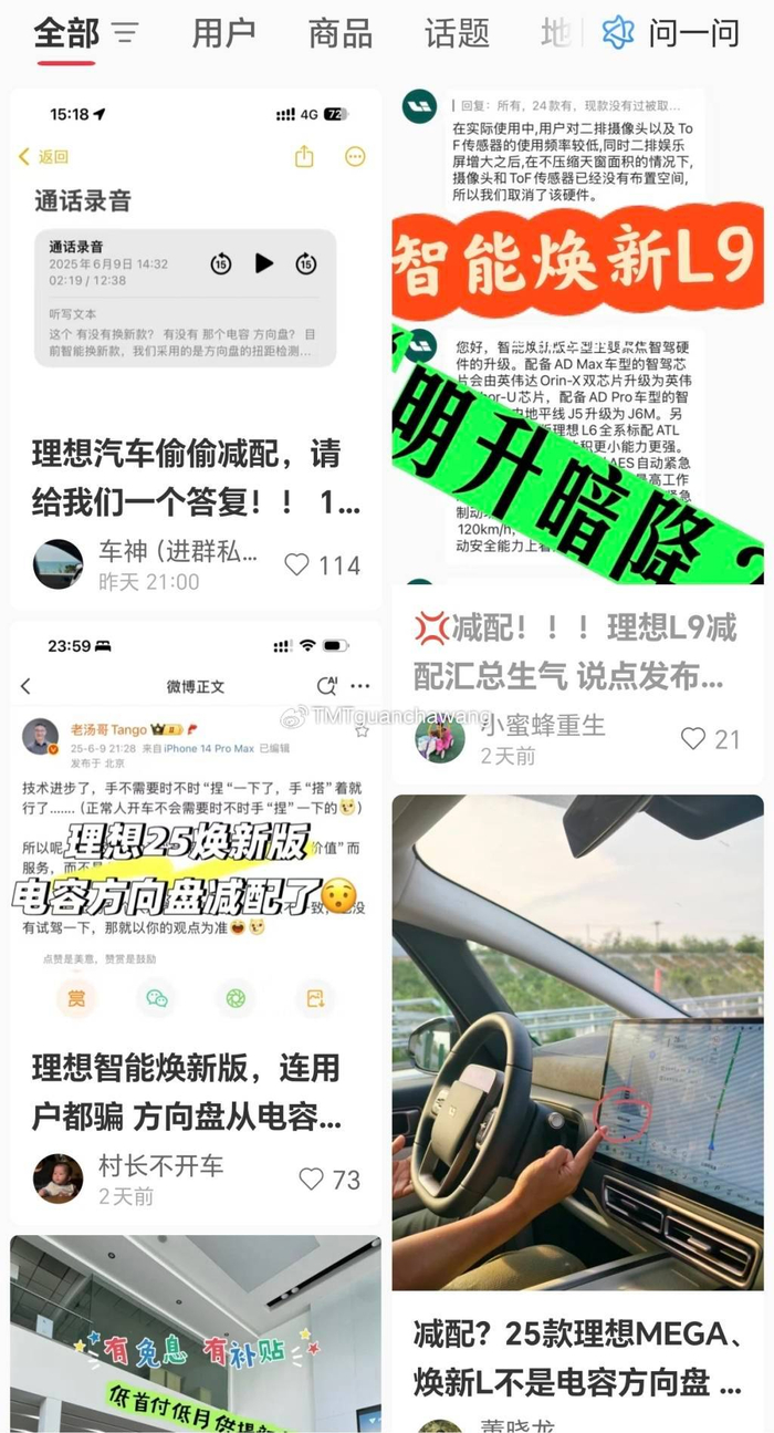 据大众新闻·风口财经报道,李先生反映的情况并非个例,不少车主晒图表示理想L9焕新版车型的配置调整,方向盘检测类型由之前的“电容+扭矩+视觉”换成了“扭矩+视觉”,质疑其存在减配情况。