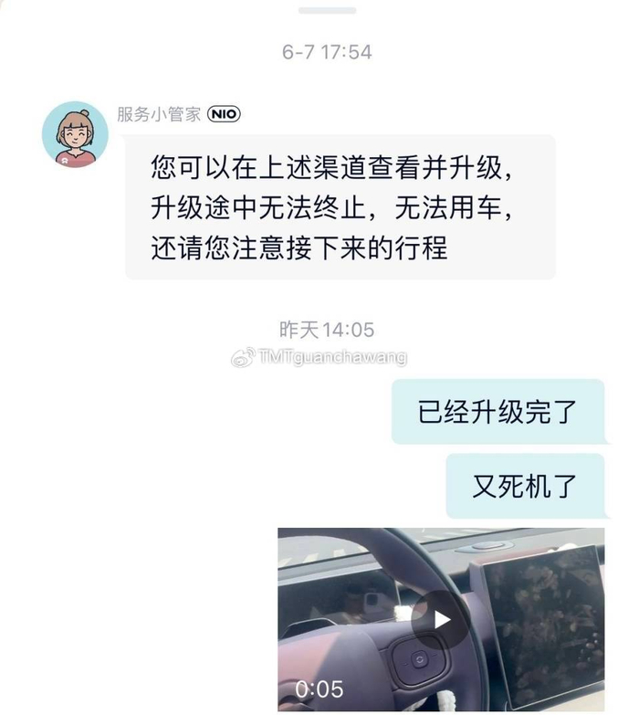 然而,这仅仅是一个开始。在接下来的两天里,陈女士的车机仿佛被诅咒了一般,频繁“死机”,双闪、转向灯无法使用,屏幕卡住或黑屏,每一次重启都像是在与死神赛跑。她多次联系蔚来服务中心,得到的答复却是“控制屏幕的电脑有问题”,建议更换中控电脑,并补偿10000蔚来积分(价值相当于1000元)。