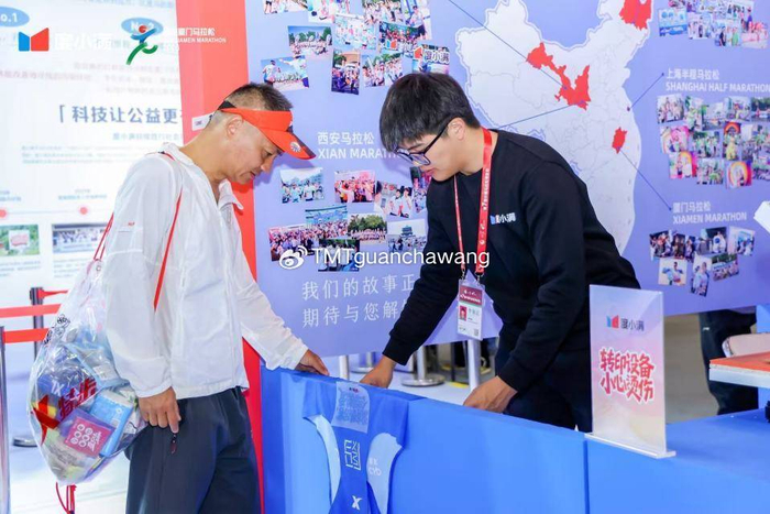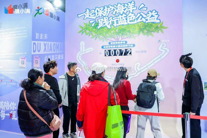 公益互动区的 “跑厦马地图 点亮红树林” 活动吸引了大批跑者参与。展区内设置的跑步机互动装置,邀请跑者以运动传递环保力量,通过跑步机挑战成功点亮全马地图后,即可领取公益捐赠卡,度小满将以跑者名义在厦门海沧湾红树林种下一颗红树苗,为厦马“蓝色公益”添砖加瓦。