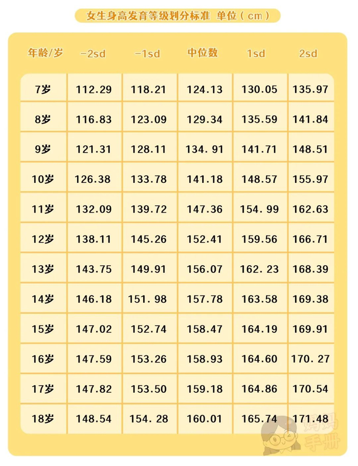 7-18岁儿童青少年身高发育表,可参考下2018年卫健委发布的《7岁~ 18岁儿童青少年身高发育等级评价》。